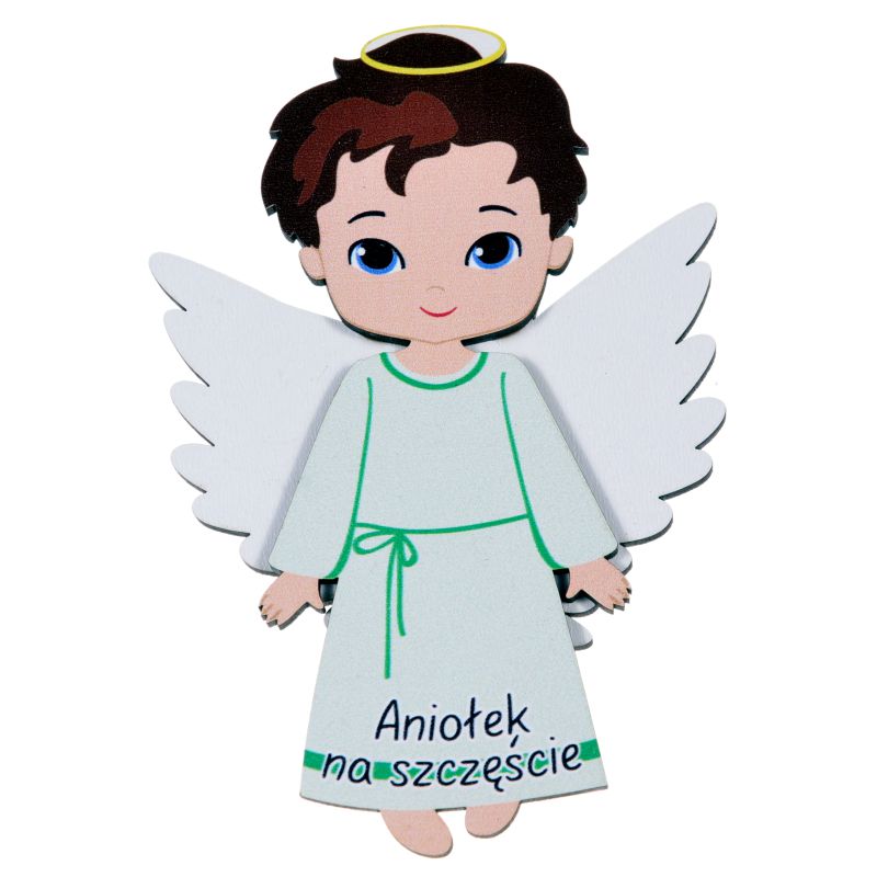 Strona główna » Pamiątki drewniane » Anioły malowane » Aniołek chłopiec jasno zielony - magnes