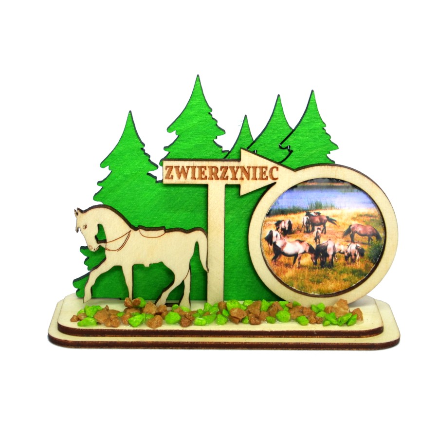 Strona główna » Pamiątki drewniane » Z podstawką » Bacówka z widokiem i koniem