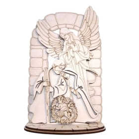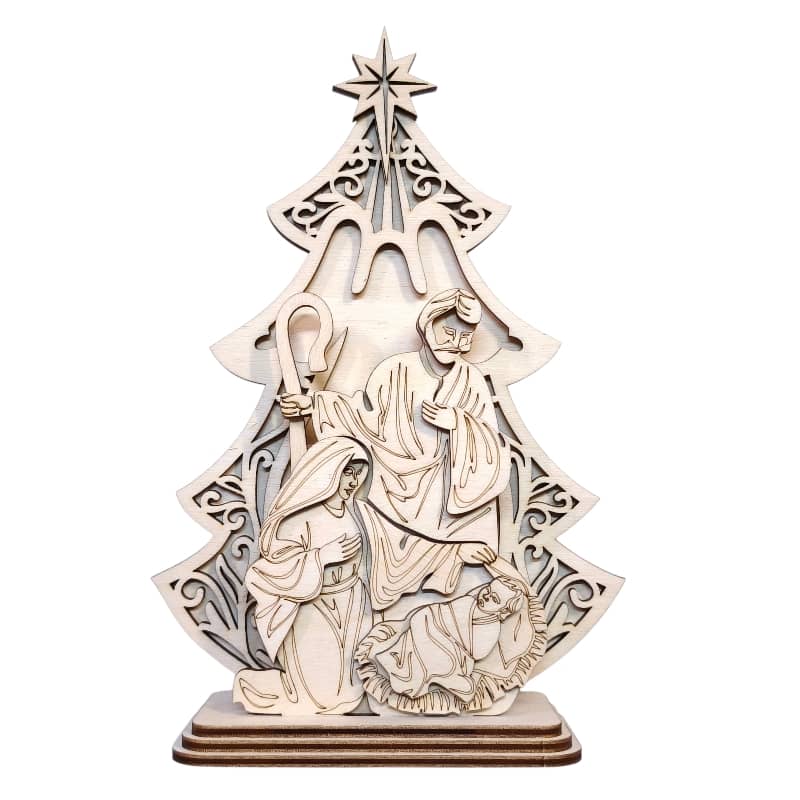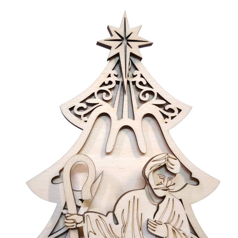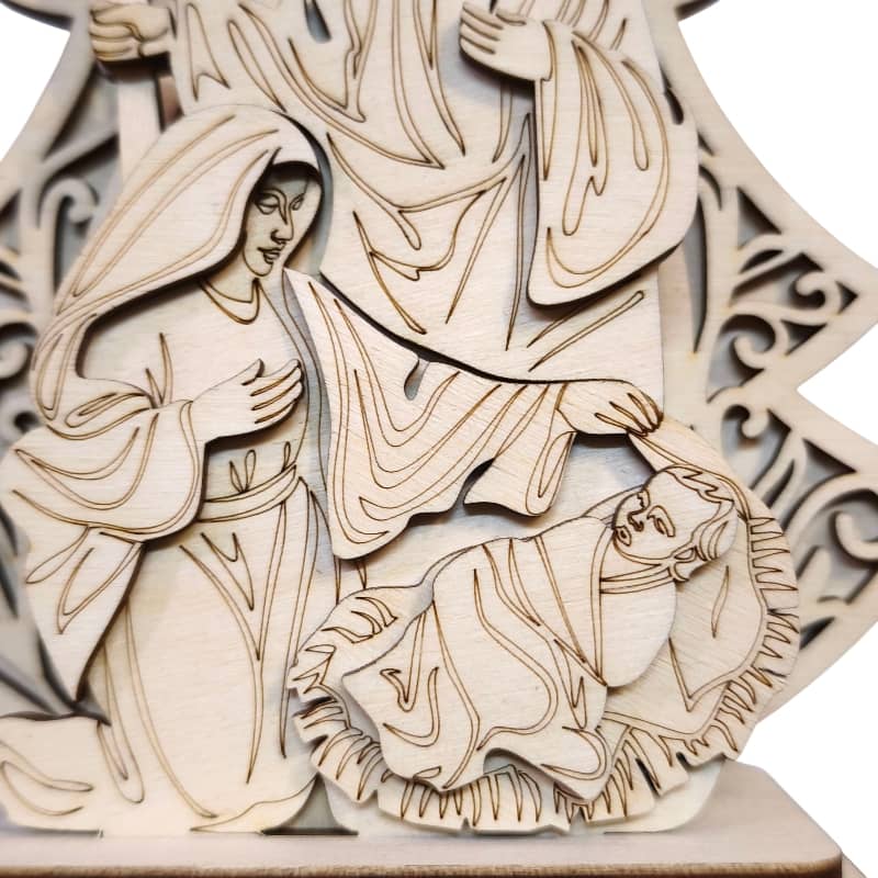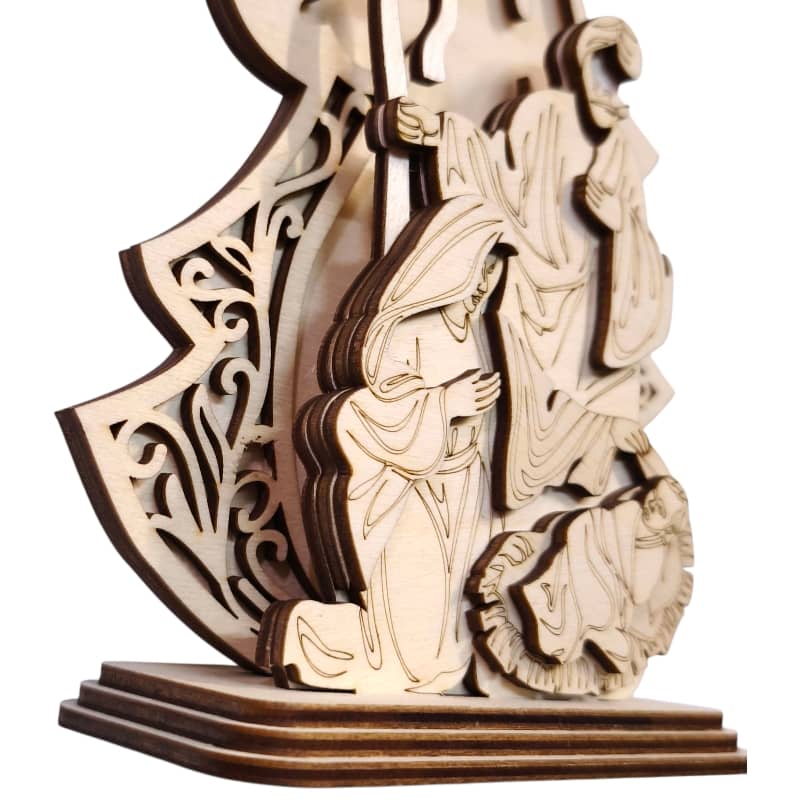 Całość osadzona jest na wysokiej, potrójnej, schodkowej podstawce. Tłem jest piękna, dwuwarstwowa choinka – tylna warstwa jest pełna, a frontowa to misterny, ażurowy wzór, w którego sercu wycięto postać anioła.