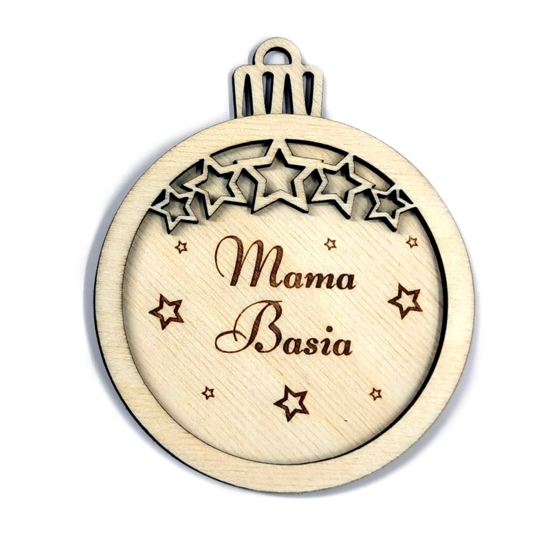 Drewniana bombka z grawerem i gwiazdkami to świetny pomysł na