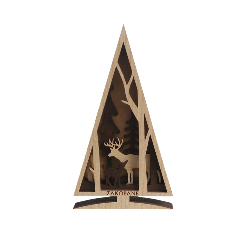 Strona główna » Pamiątki drewniane » Drewniana Choinka z jeleniami 5D N36 -15 cm