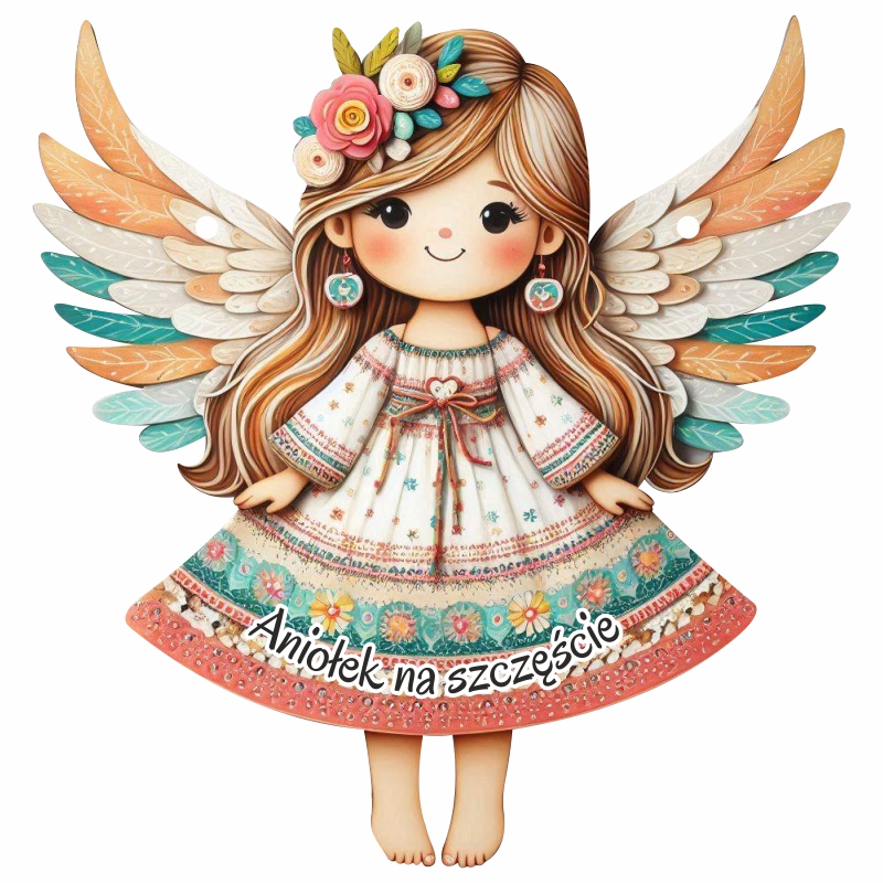 Kolorowa zawieszka anioł - najszerszy bok to około 15 cm (drugi proporcjonalny)