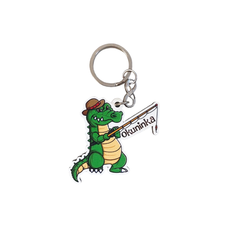 Brelok posiada także praktyczny element w postaci mocnego karabińczyka, dzięki któremu można łatwo przypiąć go do kluczy czy plecaka.