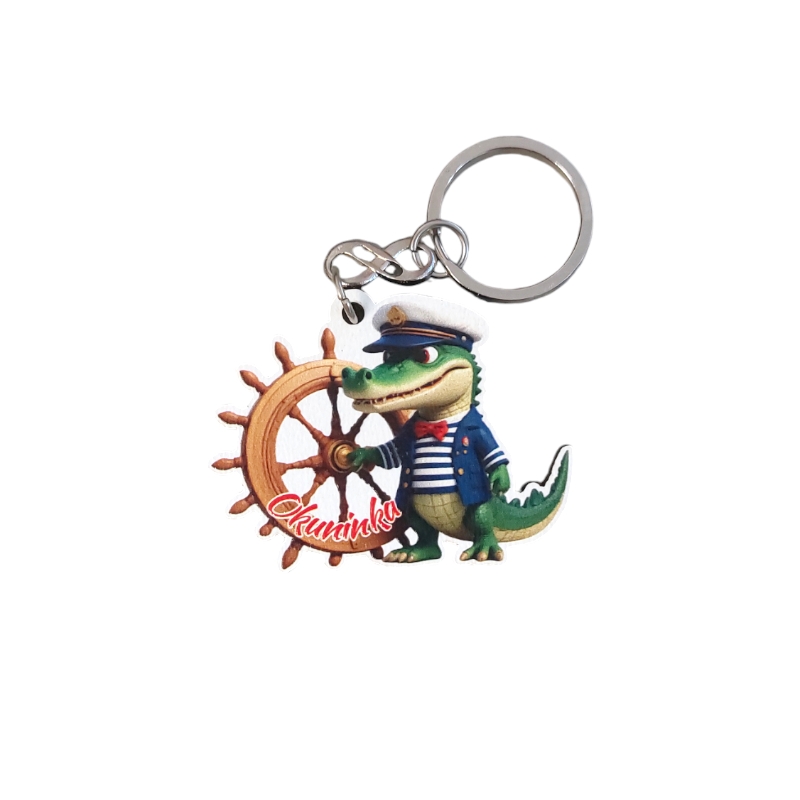 Brelok posiada także praktyczny element w postaci mocnego karabińczyka, dzięki któremu można łatwo przypiąć go do kluczy czy plecaka.