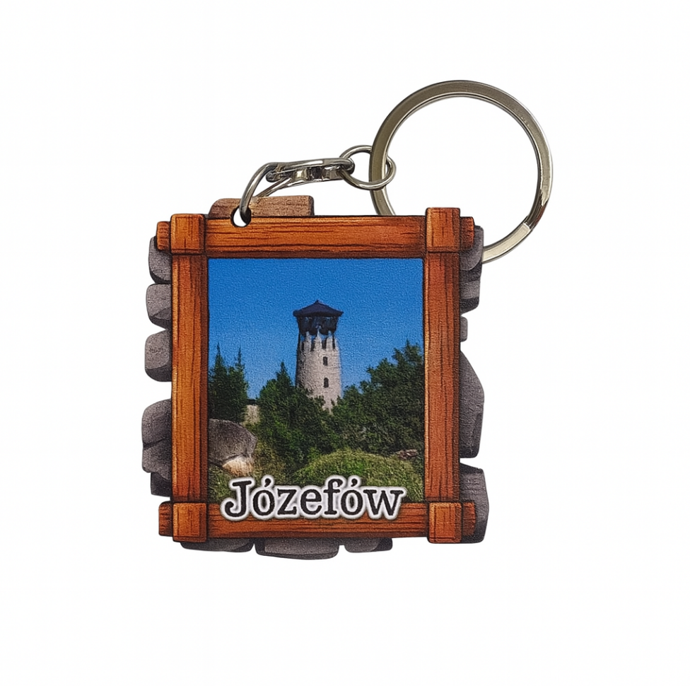 Drewniany brelok posiada praktyczny element w postaci mocnego karabińczyka, dzięki któremu można łatwo przypiąć go do kluczy czy plecaka.