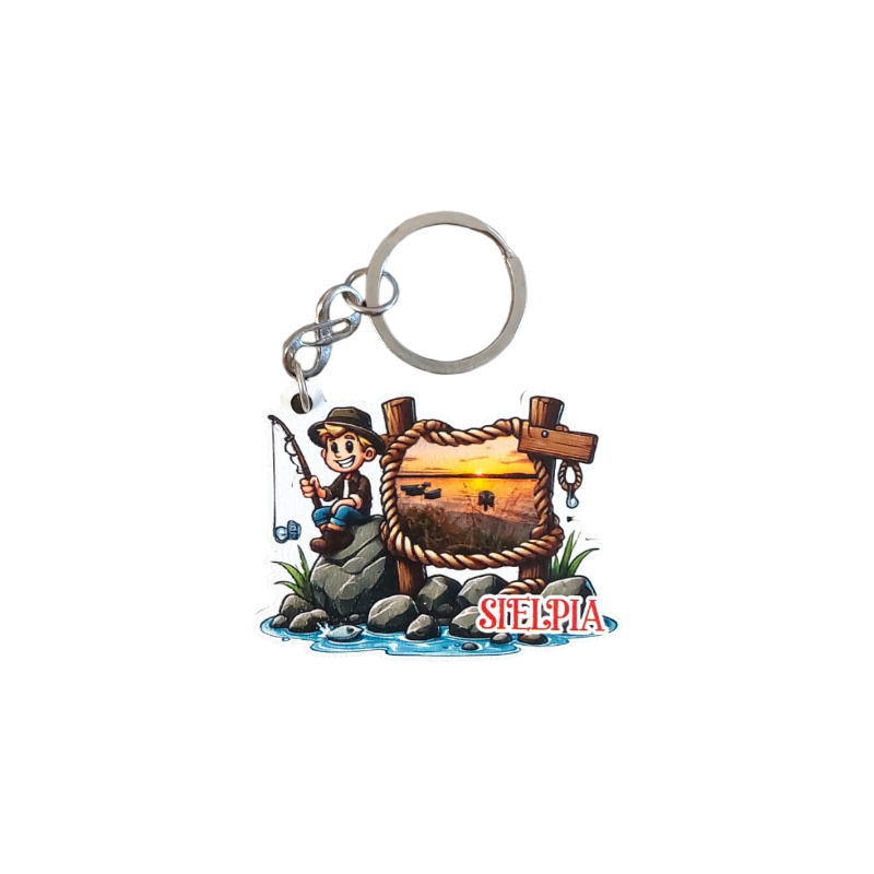 Brelok drewniany z nad morza bądź znad jeziora.