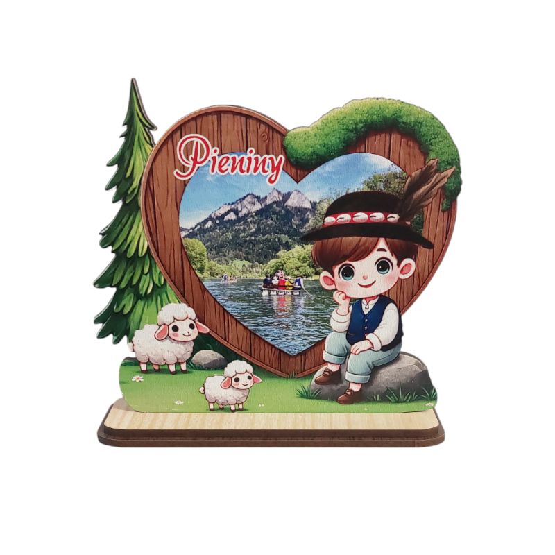Strona główna » Pamiątki drewniane » Z podstawką » Drewniany Góral z widokiem na podstawce