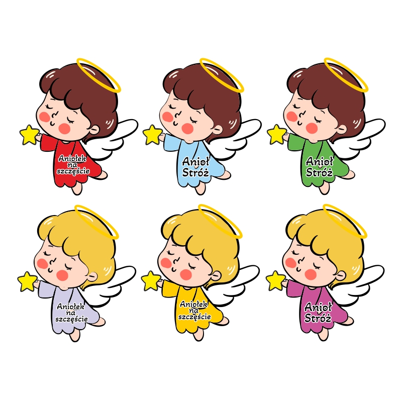 Standardowy napis na aniołkach to "Aniołek na szczęście" i "Anioł Stróż"