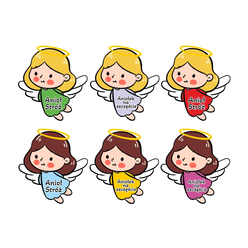 Standardowy napis na aniołkach to "Aniołek na szczęście" oraz "Anioł Stróż"