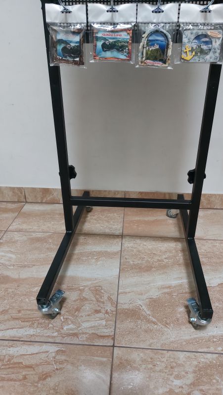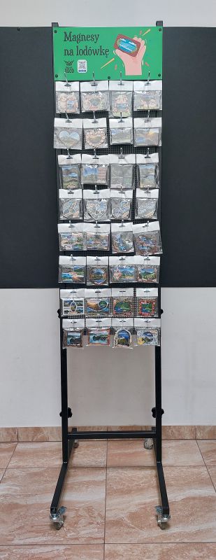 Na każdym haczyku można zawiesić 10 szt magnesów, czyli stojak jest na 640 magnesów.