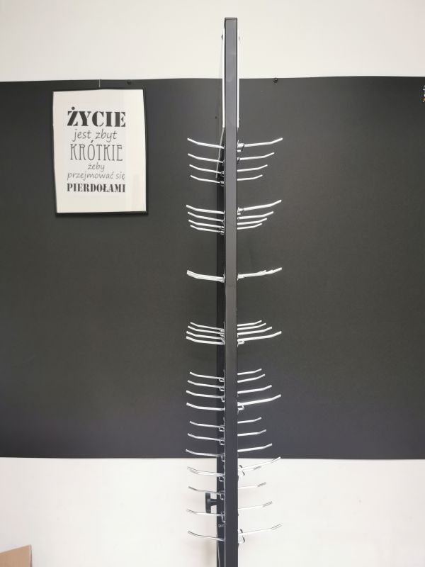 Stojak ma z obu stron metalowe haczyki, w sumie są 64szt.