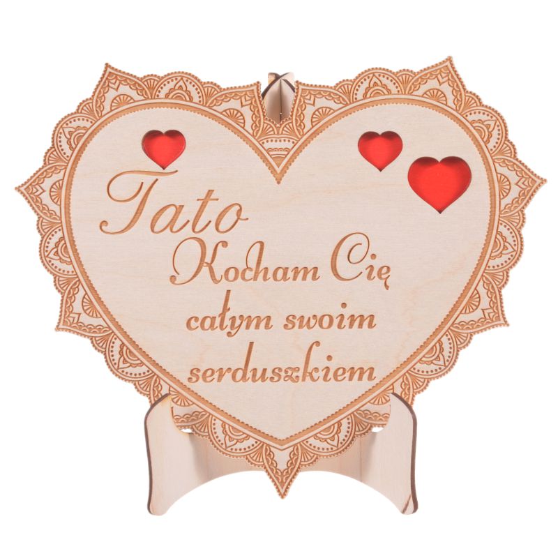 Grawerowane serce dla tatyTwój tata jest dość specyficznym człowiekiem, a Ty często nie wiesz, co mu podarować w takie dni jak Dzień Taty? Z nami już dłużej nie musisz poświęcać czasu na poszukiwania odpowiedniego prezentu, bo mamy dla Ciebie coś naprawdę efektownego i niezapomnianego, z czego Twój tata na pewno się ucieszy! Grawerowane serce na sztaludze dla taty to upominek, który nie tylko wzbudza ciekawość i pozytywne emocje, ale który pozwoli Ci wyrazić to, jak bardzo tata jest Ci bliski! Jeśli szukasz emocjonalnego prezentu, który pomoże Ci wyrazić emocje i jednocześnie w pewien sposób przekaże Twojemu tacie, jak bardzo go kochasz – to wystarczy, że zamówisz grawerowane serce na sztaludze dla swojego taty i mu je wręczysz! Dlaczego warto zamówić grawerowane serce na sztaludze dla taty?