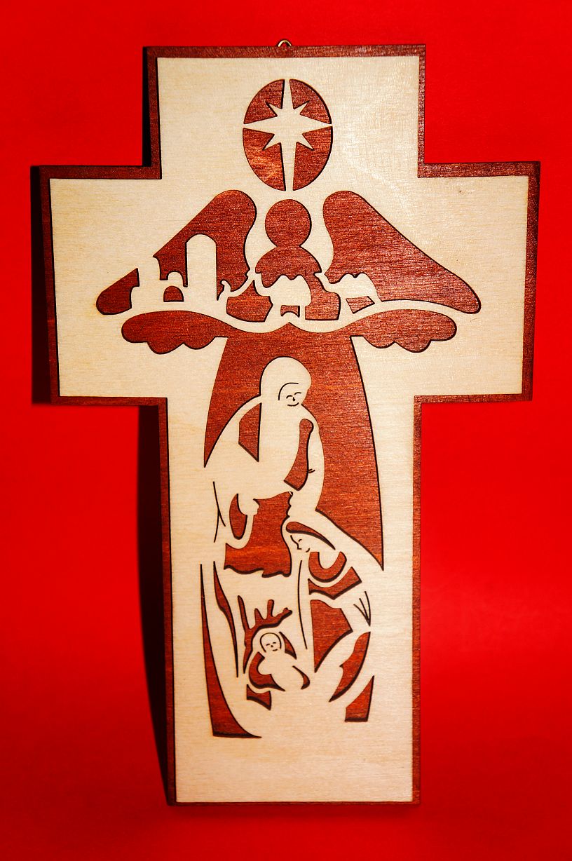Góra krzyża w kolorze naturalnej sklejki.