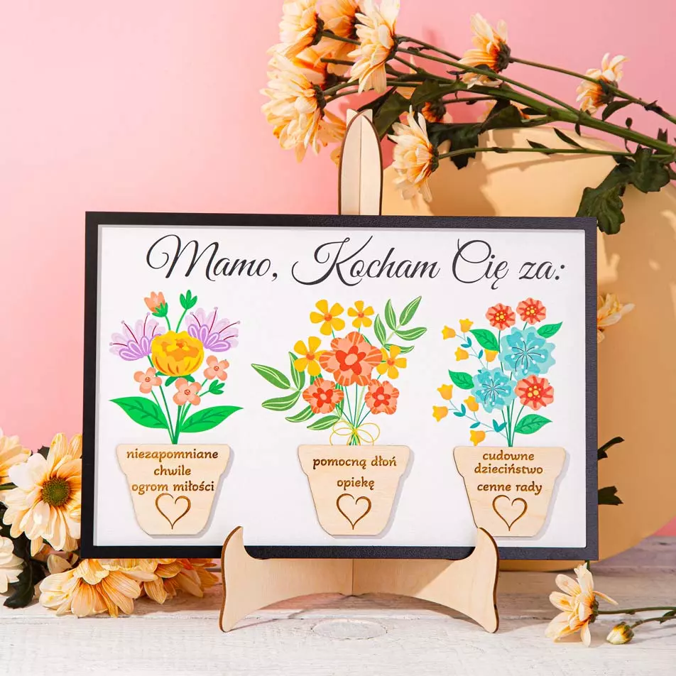 Laurka 3 BUKIETY dla MamyLaurka 3 bukiety dla mamy to propozycja na wyjątkowy i jedyny w swoim rodzaju prezent z okazji Dnia Mamy! Pomyśl przez chwilę za co kochasz swoją mamę? Za obecność, piękny uśmiech, opiekę, za to, jaka jest na co dzień, czy za to, że to właśnie niej miałeś/aś piękne dzieciństwo? Nietypowy prezent na Dzień Mamy? Laurka 3 bukiety dla mamy Z naszym upominkiem możesz swojej mamie właśnie za to podziękować! Kolorowe kwiaty w doniczkach, na których jest napisane kilka miłych słów to świetny sposób na to, by podziękować swojej mamie! Tak emocjonalny prezent dla Twojej mamy to świetna pamiątka, która sprawi Twojej mamie mnóstwo radości! Jeśli szukasz od dłuższego czasu wyjątkowego prezentu dla swojej mamy – w naszym sklepie internetowym znajdziesz idealny upominek! Dlaczego warto wybrać właśnie tę laurkę dla mamy? Delikatne kwiaty to wspaniała forma podziękowania dla Twojej mamy w tak ważnym dniu jak Dzień Mamy! Laurka 3 bukiety dla mamy to pomysł na uroczy prezent, który pomoże Ci wyrazić emocje. Podaruj jej prezent, którego bardzo długo nie zapomni i który wzruszy ją do łez! Nie czekaj, tylko zamów go jeszcze dziś! |