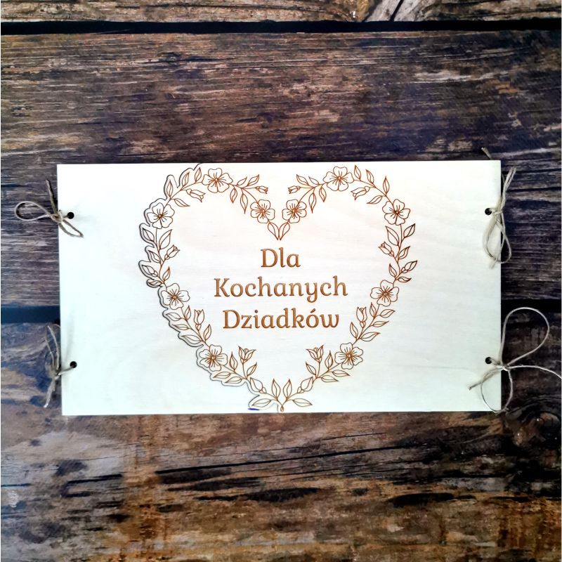 Nasza wyjątkowa laurka ze sklejki brzozowej i płyty HDF jest otwierana tak jak album lub kartka.