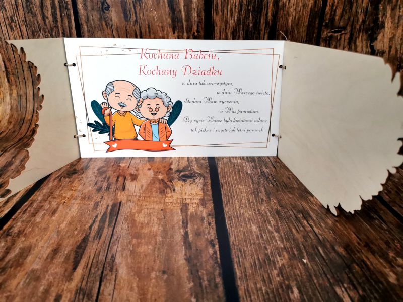 Otwierana laurka dla dziadków z życzeniami w środku i piękną grafiką to odpowiedni sposób, by im podziękować za wszystko z klasą!