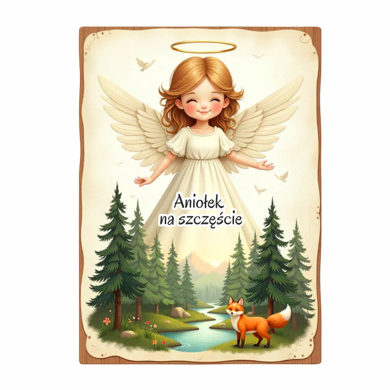 Uroczy drewniany magnes owalny z aniołem i lisem to wyjątkowa pamiątka łącząca motyw natury i duchowego spokoju.