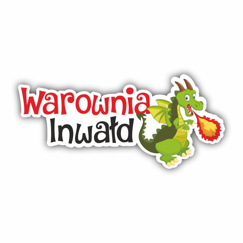 Drewniany magnes napis WAROWNIA INWAŁD ze smokiem.
