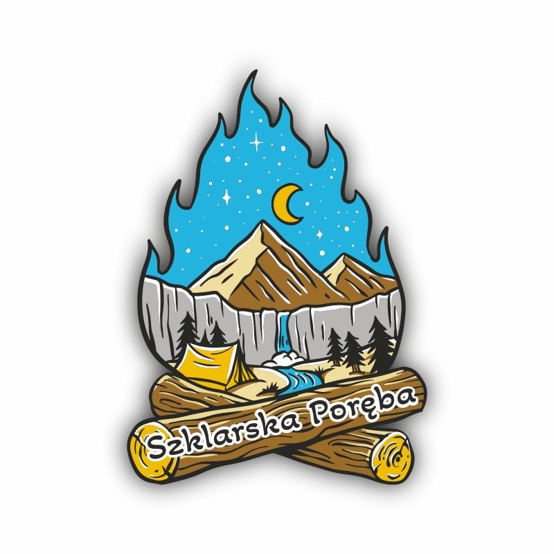 Drewniany magnes ognisko z gotową grafiką.