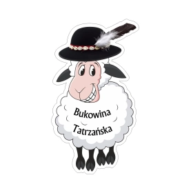 Drewniany magnes owieczka z widoczkiem.