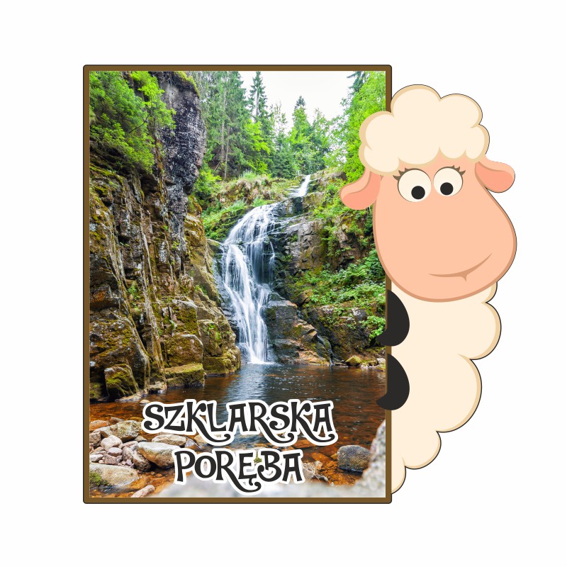Drewniany magnes owieczka z widoczkiem.