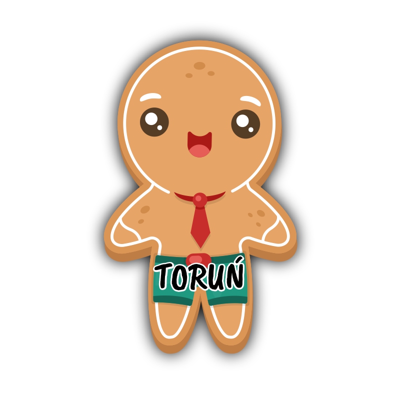 Drewniany magnes piernik z kolorowym wdziankiem.