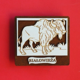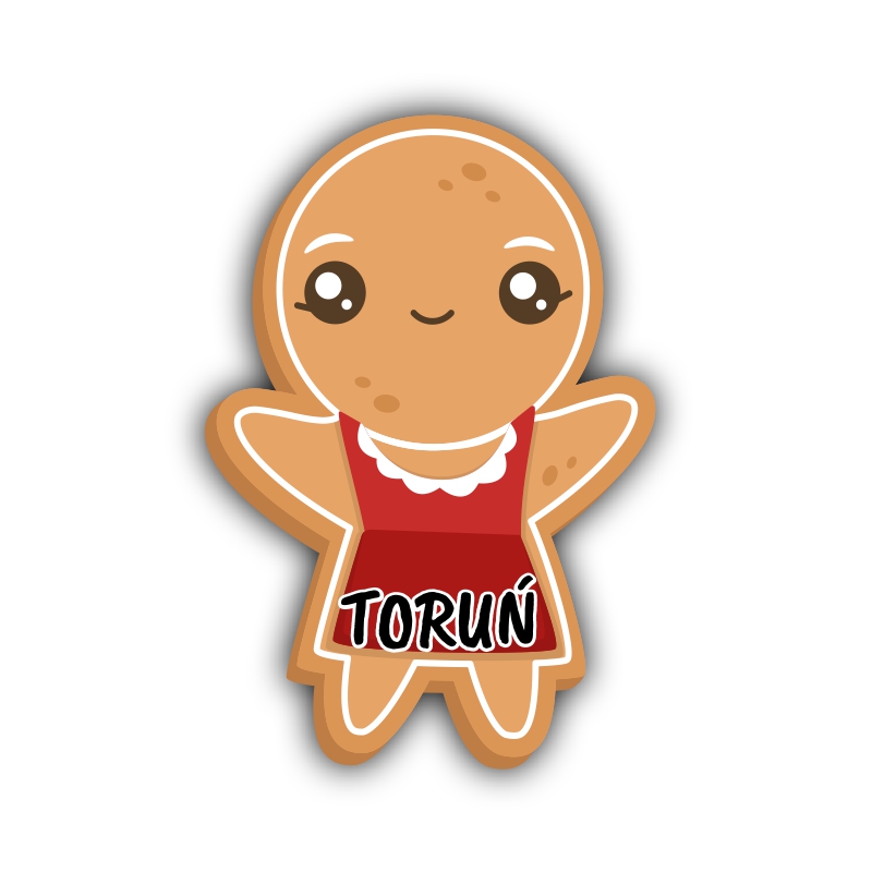 Drewniany magnes piernik z kolorowym wdziankiem.