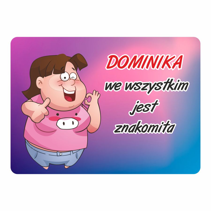 Strona główna » Pamiątki drewniane » Magnesy imienne z drewna » Magnes śmieszny z imieniem DOMINIKA