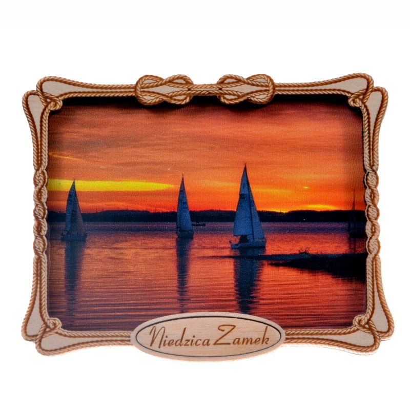 Drewniany magnes na lodówkę ze zdjęciem oraz grawerowaną liną.