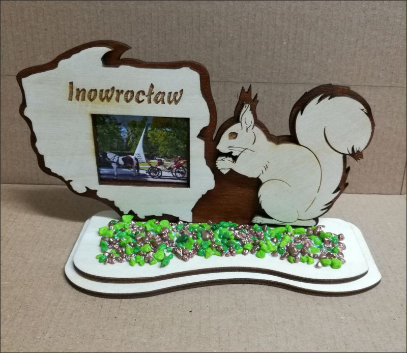Strona główna » Pamiątki drewniane » Z podstawką » Mapa z wiewiórką na podstawce