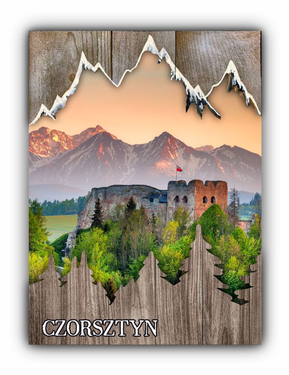 Obraz składa się z 3 części, tył + doklejany kontur gór oraz choinki Cały obraz wykonany jest wysokiej jakości nadrukiem UV, który nie blaknie na słońcu.