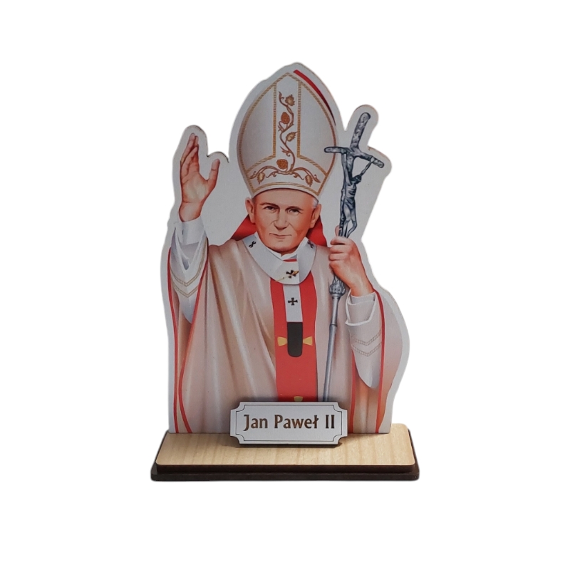 Strona główna » Pamiątki drewniane » Obrazek na podstawce Jan Paweł II N1