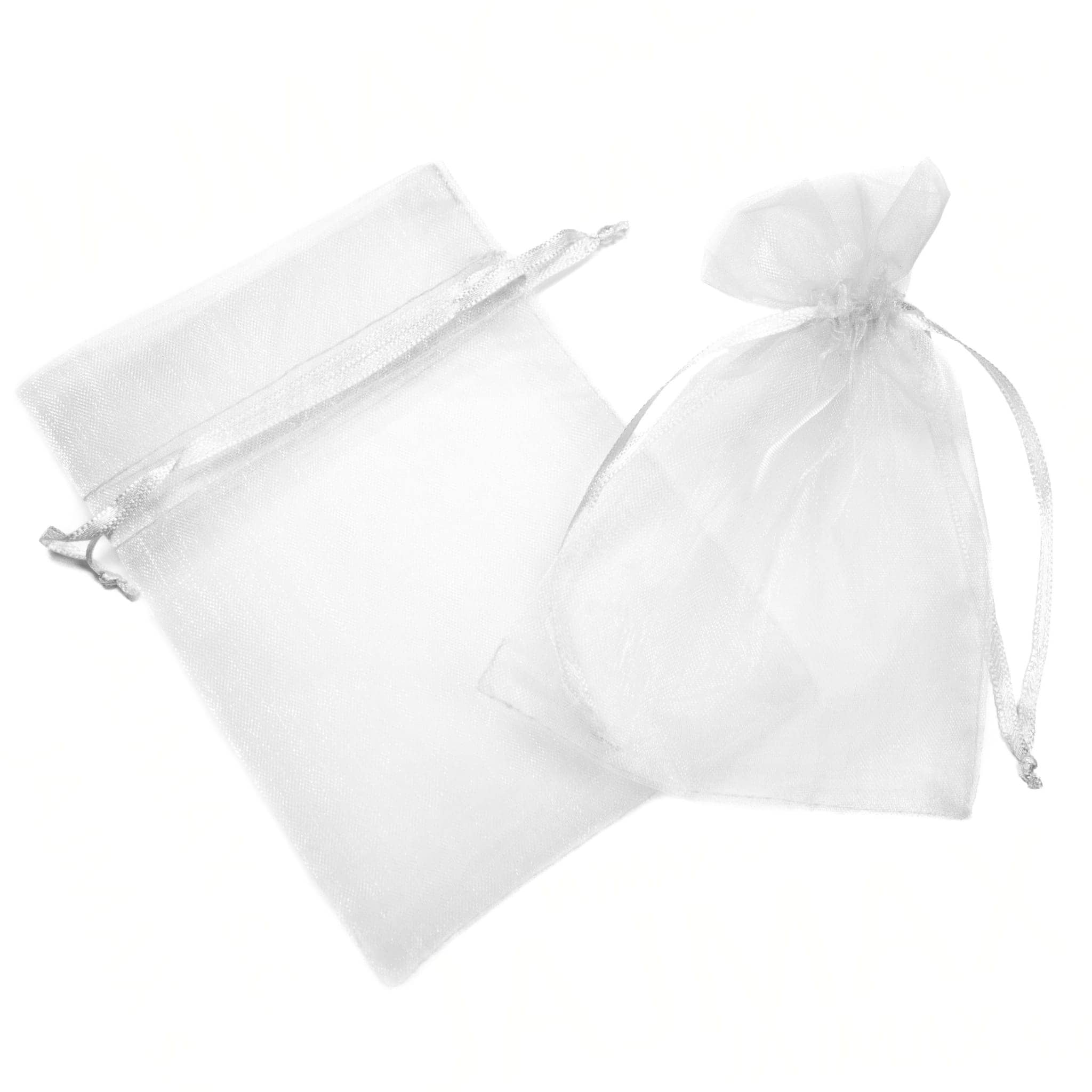 Ozdobne woreczki z białej organzy w rozmiarze 10x13cm.