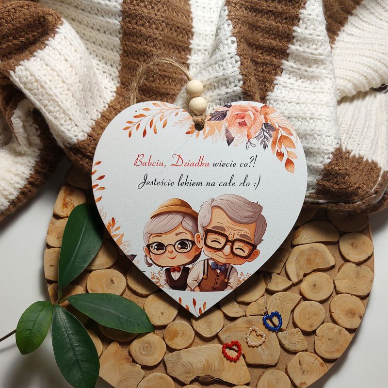 Drewniana zawieszka z kolorowym nadrukiem UV to doskonały prezent dla Dziadków, który można podarować z okazji Dnia Babci i Dziadka.