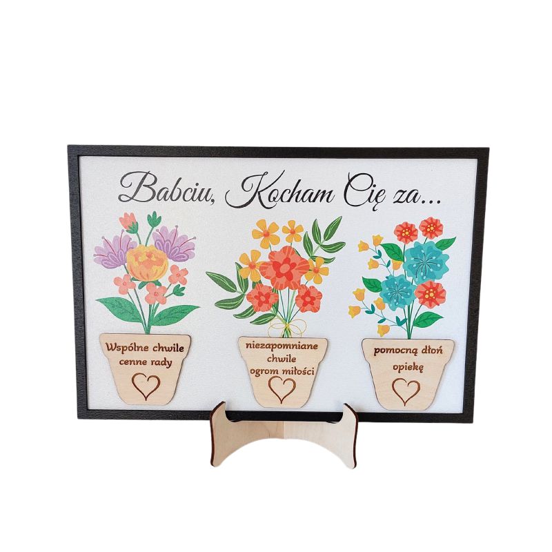 Drewniana laurka z kolorowym nadrukiem UV to idealny prezent na Dzień Babci i Dziadka.