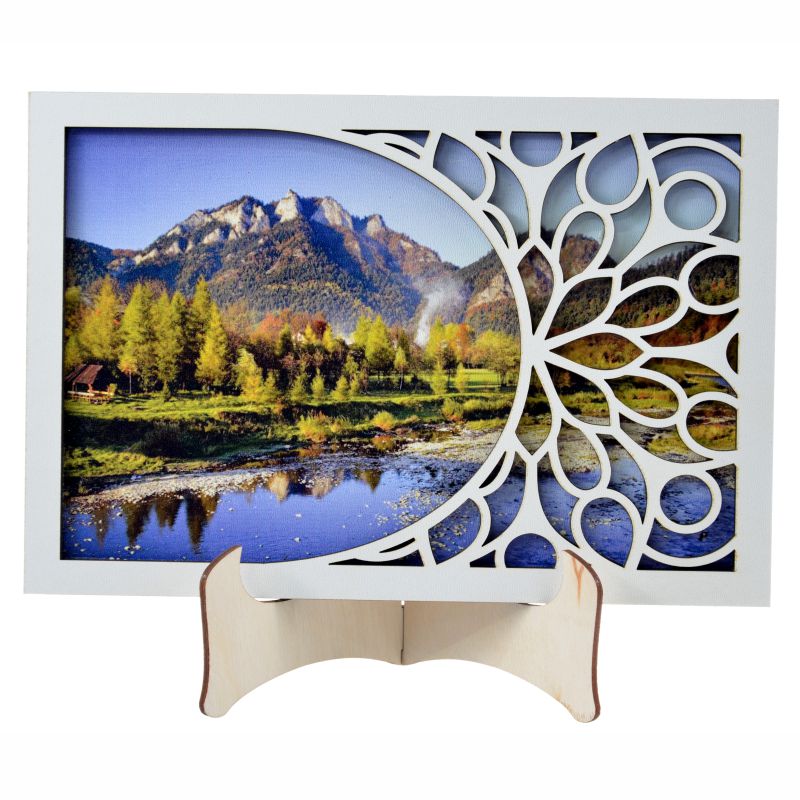 Oryginalna ażurowa ramka z drukowanym na płycie hdf zdjęciem. Ramkę można położyć na dołączonej drewnianej sztaludze.