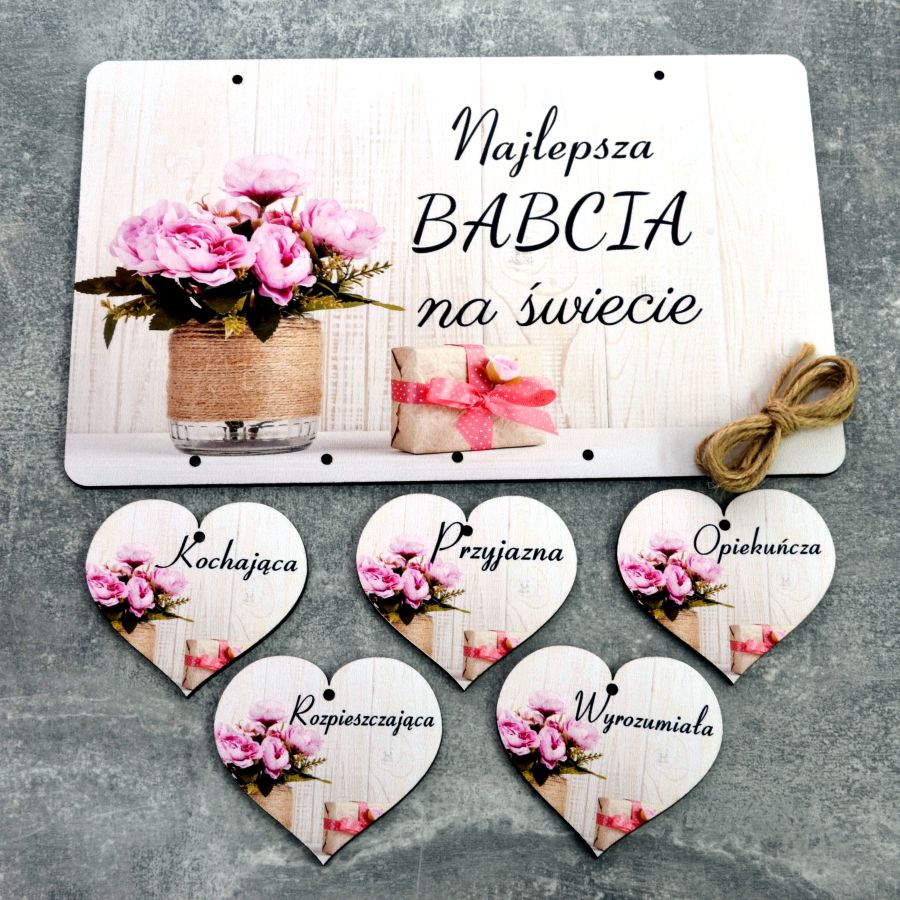 Strona główna » Pomysły na prezenty » Prezenty dla babci i dziadka » Tabliczka z sercami i dedykacją dla babci N1