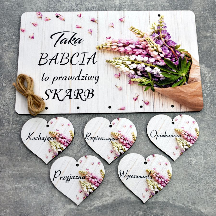 Tabliczka z sercami i dedykacją dla babci N4