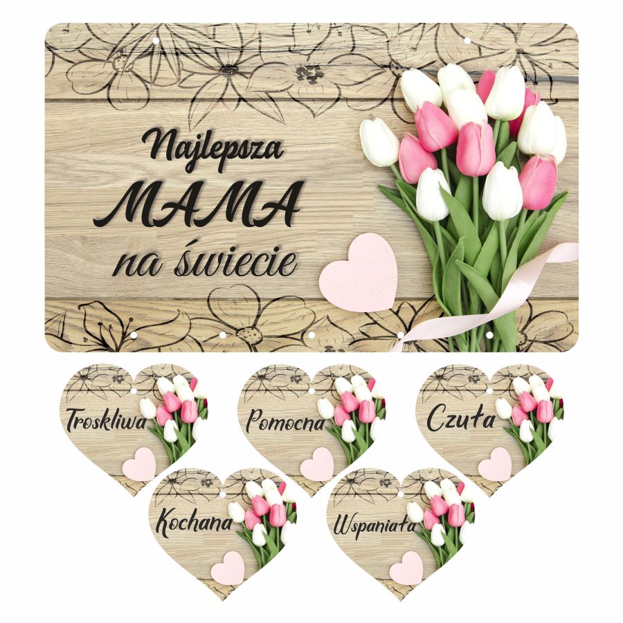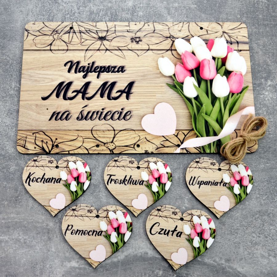 Chcesz podarować swojej mamie naprawdę niezwykły prezent i oryginalny w formie, który ją zachwyci i który na długo zapamięta? Tabliczka z sercami i dedykacją dla mamy „Najlepsza mama na świecie” to bardzo dobry wybór! Dlaczego? Przede wszystkim jest bardzo starannie wykonana z dbałością o każdy, najmniejszy detal, co potęguje wrażenia wizualne. Możliwość personalizacji napisu na tabliczce sprawi, że Twoja mama poczuje się naprawdę wyjątkowo, gdy wręczysz jej taki prezent. Drewniana tabliczka dla mamy składa się z małych serduszek z cechami charakteru Twojej mamy, które możesz powiesić na tablicy w dowolnej kolejności, co na pewno wywoła wzruszenie. Taka forma upominku na Dzień Mamy na pewno wywoła uśmiech na twarzy osoby, która jest dla Ciebie najważniejsza. A właśnie na tym Ci zależy, prawda? Kwiatowy motyw wysokiej jakości wykonany techniką UV jest bardzo uniwersalny i pomoże Ci stworzyć świetny zestaw prezentowy np. z pięknie pachnącymi kwiatami. Wybierz oryginalną tablicę z sercami, jeśli chcesz zaskoczyć swoją mamę nietypowym, ale bardzo oryginalnym prezentem z okazji Dnia Mamy. Do prezentu dodawany jest gratis 1m sznurka ozdobnego. Rozmiar tabliczki to 24x15cm natomiast serduszek 6,5x6cm. |