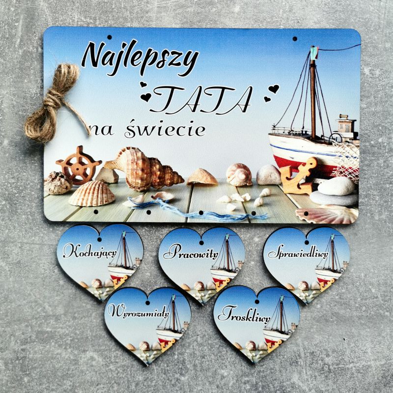 Twój tata uwielbia nietypowe pamiątki i cieszy się z każdego prezentu jaki tylko dostanie? Lubi motyw morza i jednocześnie zawsze mówi, że żadnych prezentów mu nie trzeba, bo Ty jesteś najlepszym co go w życiu spotkało? Jeśli szukasz ciekawego upominku dla swojego taty i masz ochotę podarować mu na Dzień Taty coś, czego długo nie zapomni – to w naszym sklepie internetowym znajdziesz morską tabliczkę z sercami i specjalną dedykacją dla Twojego taty! Taki prezent z okazji Dnia Taty znajdziesz tylko u nas! Poznaj powody, dla których warto zamówić upominek dla swojego taty w Bazarek Deco Tabliczka z sercami i dedykacją to bardzo dobry prezent na Dzień Ojca dla Twojego taty. Dlaczego? Nasza propozycja upominku na prezent dla Twojego taty z okazji Dnia Ojca to prosty, niedrogi i ciekawy wizualnie prezent, który Twój tata będzie mógł powiesić w dowolnym miejscu. W ten sposób zawsze przypomni sobie, że dostał tak wyjątkowy prezent właśnie od Ciebie! Ponadto to świetny sposób, by przekazać tacie bez używania słów jak bardzo jest Ci bliski! Rozmiar tabliczki to 24x15cm natomiast serduszek 6,5x6cm. |