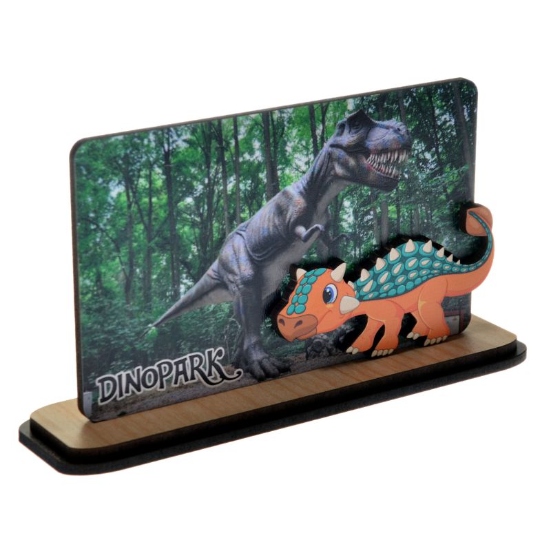 Dinozaur oraz widoczek nadrukowany jest wysokiej jakości drukiem UV, który nie blaknie na słonku.