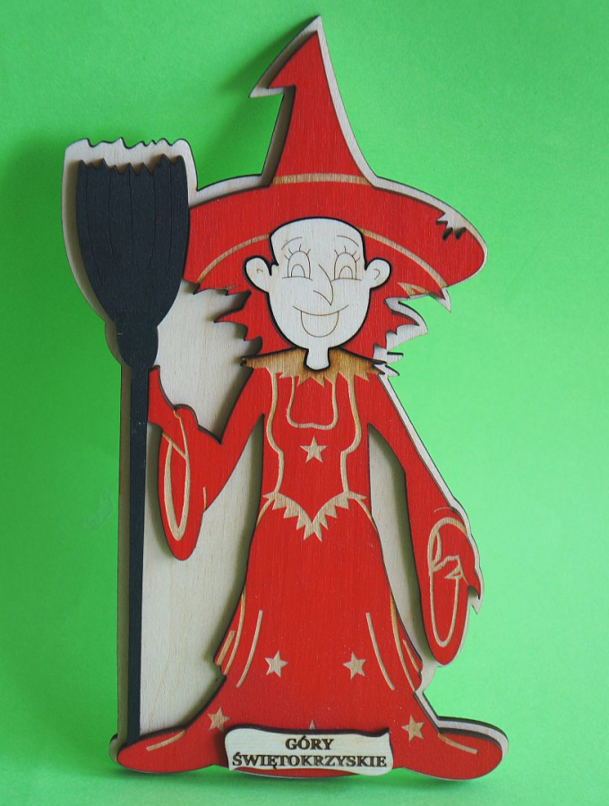 Czarownica wycinana z czerwonej płyty - grawerowana, lakierowana..